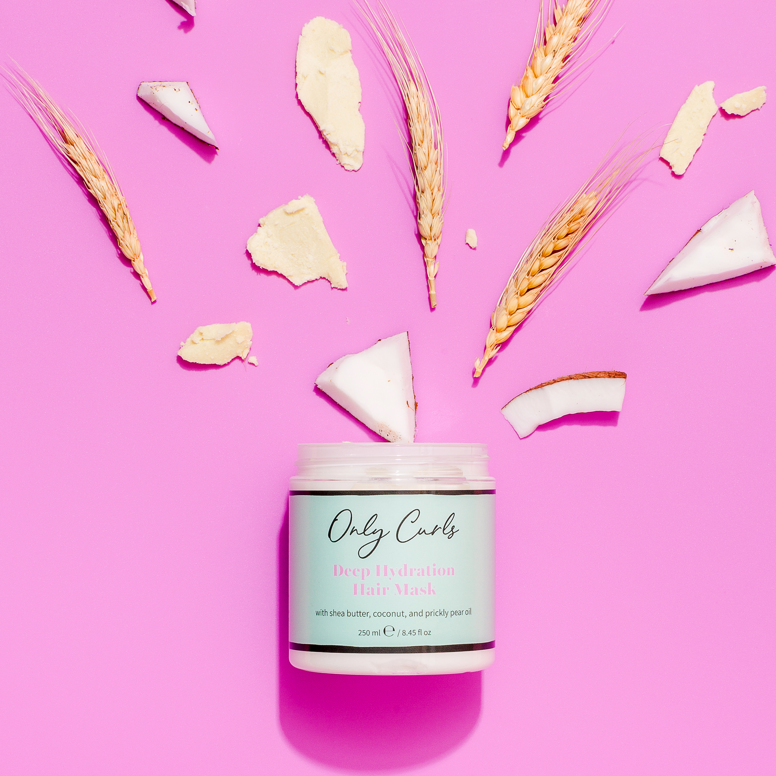 Taukmedžių sviestas, kokosų, arganų ir dygliuotųjų kriaušių aliejai suminkštins ir sudrėkins jūsų plaukus. Kokosų ekstraktai užrakins drėgmę ir suteiks plaukui taip reikalingų maistinių medžiagų. Hidrolizuoti kviečių proteinai sustiprins garbanas, atkurs jų struktūrą bei apsaugos nuo aplinkos poveikio. Būtiniausi mineralai suteiks plaukams stiprio, žvilgesio ir sveikos išvaizdos.