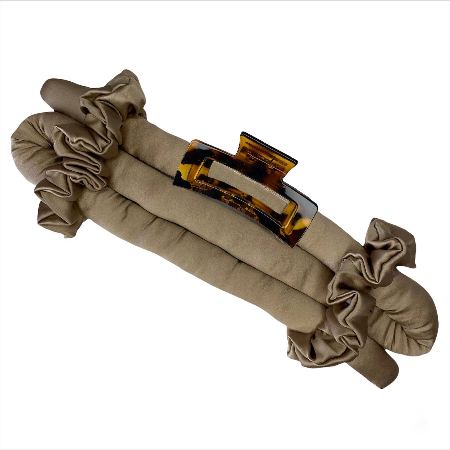 Natūralaus šilko garbanojimo juosta su šilkinėmis gumytėmis ir segtuku